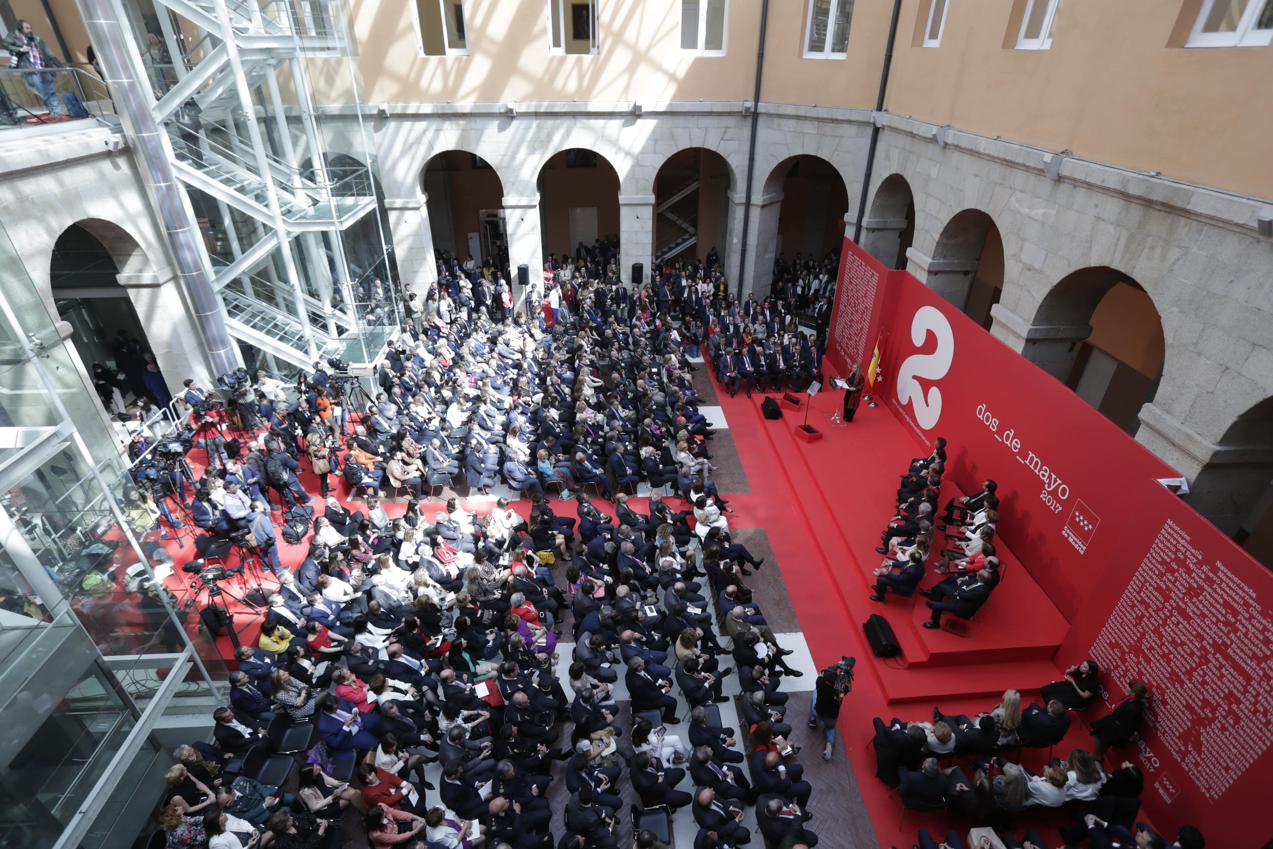 Por último, de nuevo en el interior de la sede de la Comunidad de Madrid, Cifuentes recibió a las distintas personalidades de la política, universidad, economía, justicia, cultura, periodismo, deporte y de los ejércitos en la tradicional Recepción en la Real Casa de Correos con Motivo del 2 de Mayo.