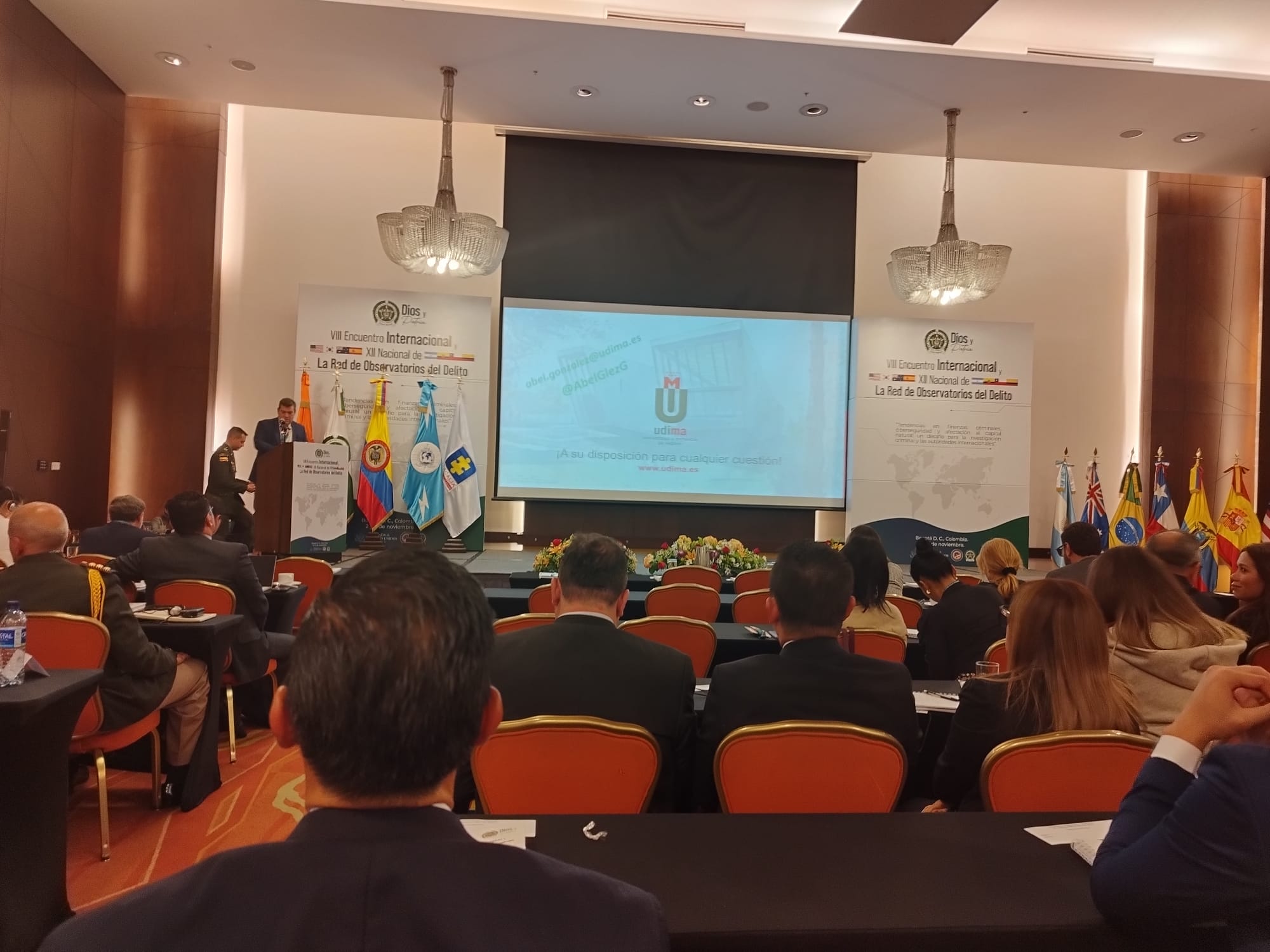El VIII Encuentro Internacional y XII Nacional de la Red de Observatorios del Delito es un evento organizado por la Dirección de Investigación Criminal e Interpol de la Policía Nacional de Colombia, en el que ha estado presente la Universidad a Distancia de Madrid, UDIMA, por medio de su director de Relaciones Internacionales, Fredy Araujo, y el director del Departamento de Criminología, Abel González.