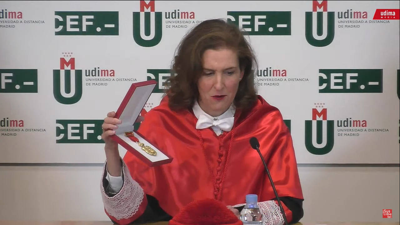 Cerró la agenda la doctora y presidenta de la UDIMA, María Aránzazu de las Heras, primero con la entrega de las Medallas de Honor a las Empresas que han ofrecido servicios especiales a la institución educativa. Tanto aquellas que confían en la UDIMA la formación de sus empleados, como las que solicitan estudiantes para sus prácticas o futuros empleos, y complementan la oferta formativa de la universidad.