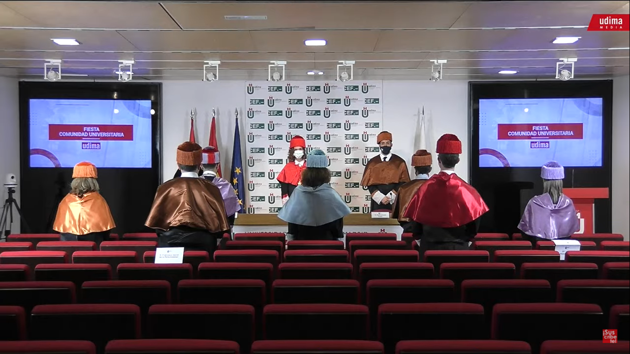 Siguiendo los consejos de las autoridades sanitarias y recordando las ausencias que se ha cobrado la pandemia, la UDIMA celebró un año más la Festividad de la Comunidad Universitaria. Un acto virtual en el que se otorgó el premio extraordinario a los estudiantes de Grado, Máster y Doctorado; se nombró a los nuevos doctores; se reconocieron los principales hitos del PDI y PAS de la institución, y se entregaron las Medallas de la Universidad a las empresas colaboradoras. Un acto, en suma, que puso en valor el aprendizaje pese a las dificultades, así como el binomio: investigación y docencia.