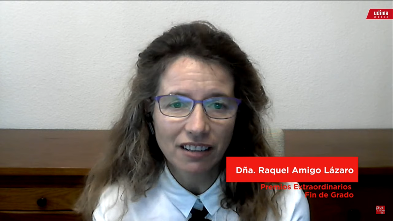 Raquel Amigo, acreedora del Premio Extraordinario de Fin de Grado en el Grado de Magisterio de Educación Primaria, puso de manifiesto la ardua tarea de volver, como ella, a estudiar en la universidad, y además hacerlo a distancia. Agradeciendo el compañerismo y la cercanía de los docentes de la UDIMA señaló: "Ahora toca poner en práctica todo lo aprendido. Debemos ser inconformistas, sumarnos al cambio" como el que atraviesa "la educación", y al que invitó a todos los alumnos a "formar parte".