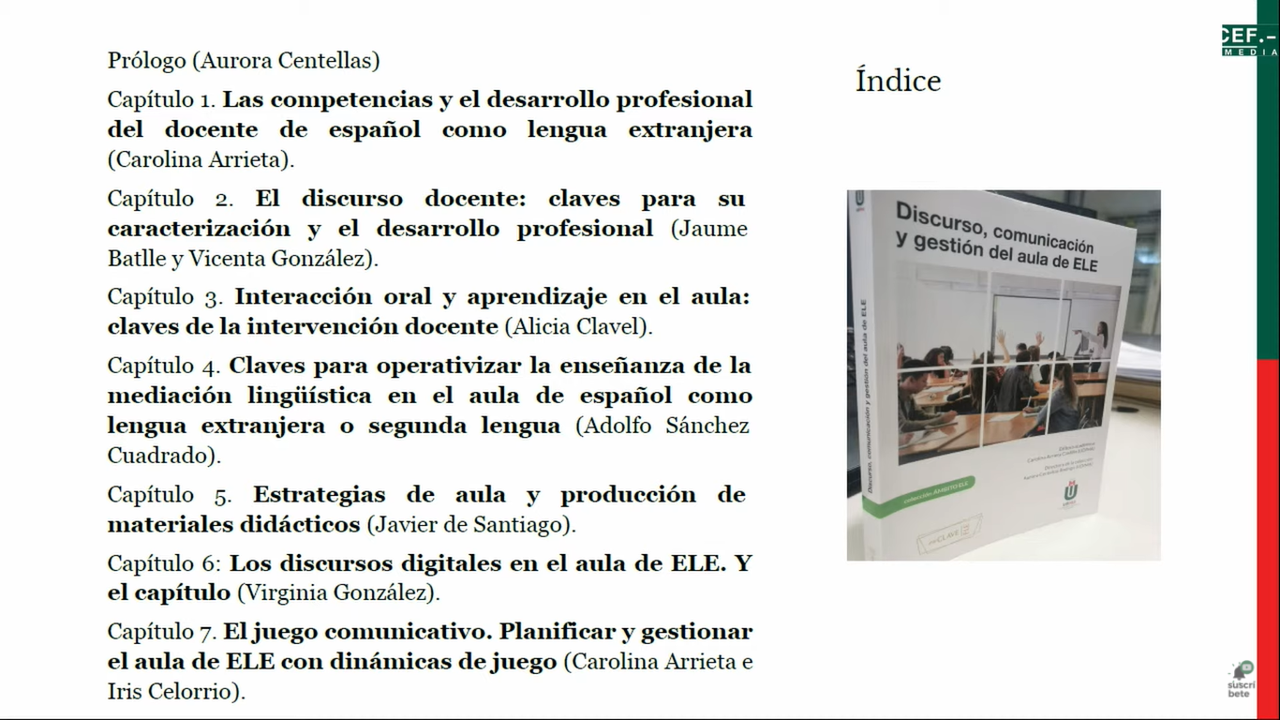 Virtualmente, las coautoras estuvieron acompañadas por algunos de los especialistas que han elaborado el texto, y que destacaron lo esencial de cada capítulo. Un repaso para dar el "reconocimiento y atención necesarios" al docente de lenguas extranjeras, comentaba Arrieta. Porque "el español es uno de los grandes motores de patrimonio cultural y riqueza del mundo hispanohablante, tiende puente entre regiones, favorece los negocios y el acceso a la formación y la cultura".