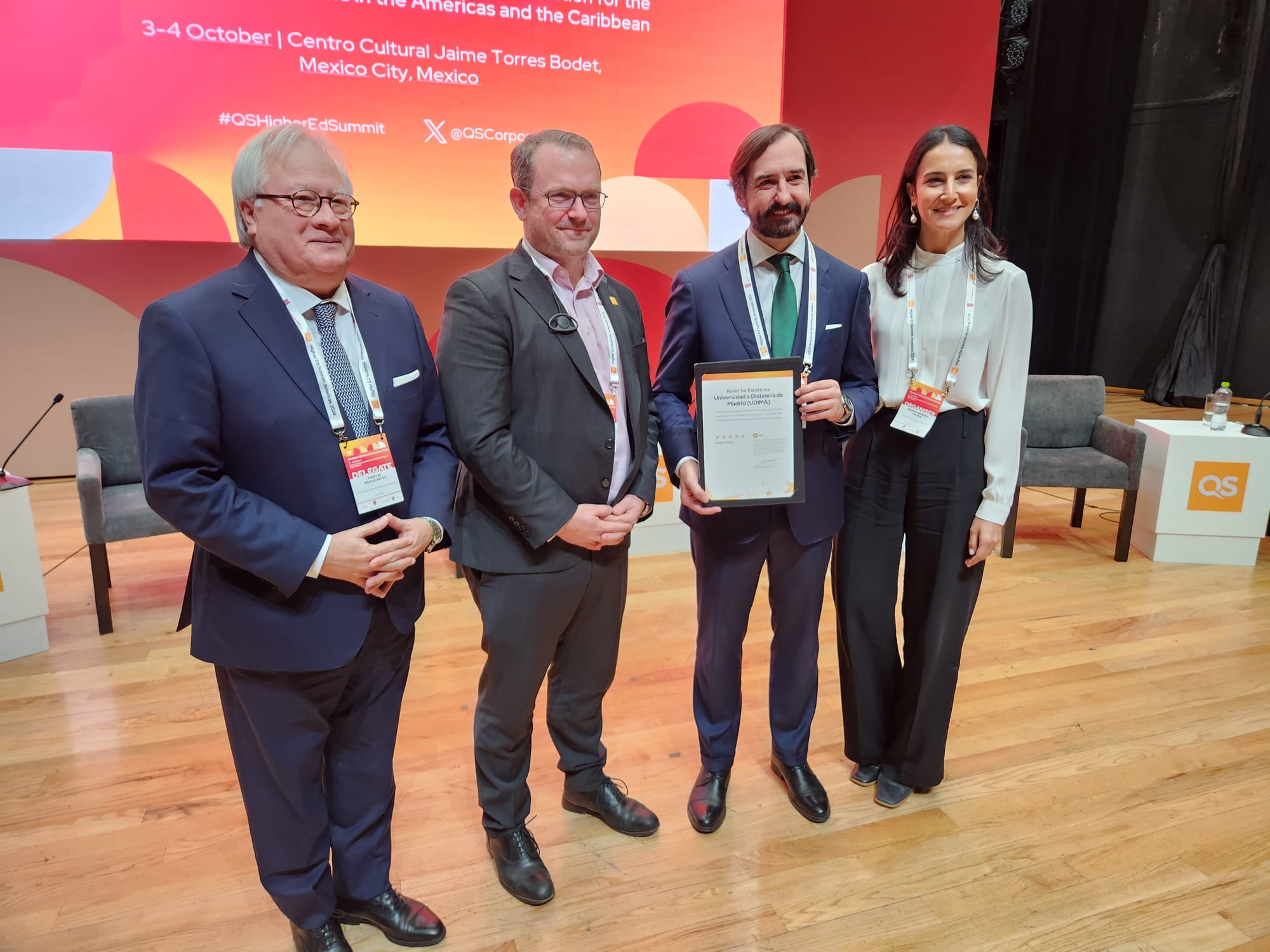 UDIMA recibe su certificado 'QS Stars' en la cumbre 'QS Higher Ed Summit: Americas 2024' en México