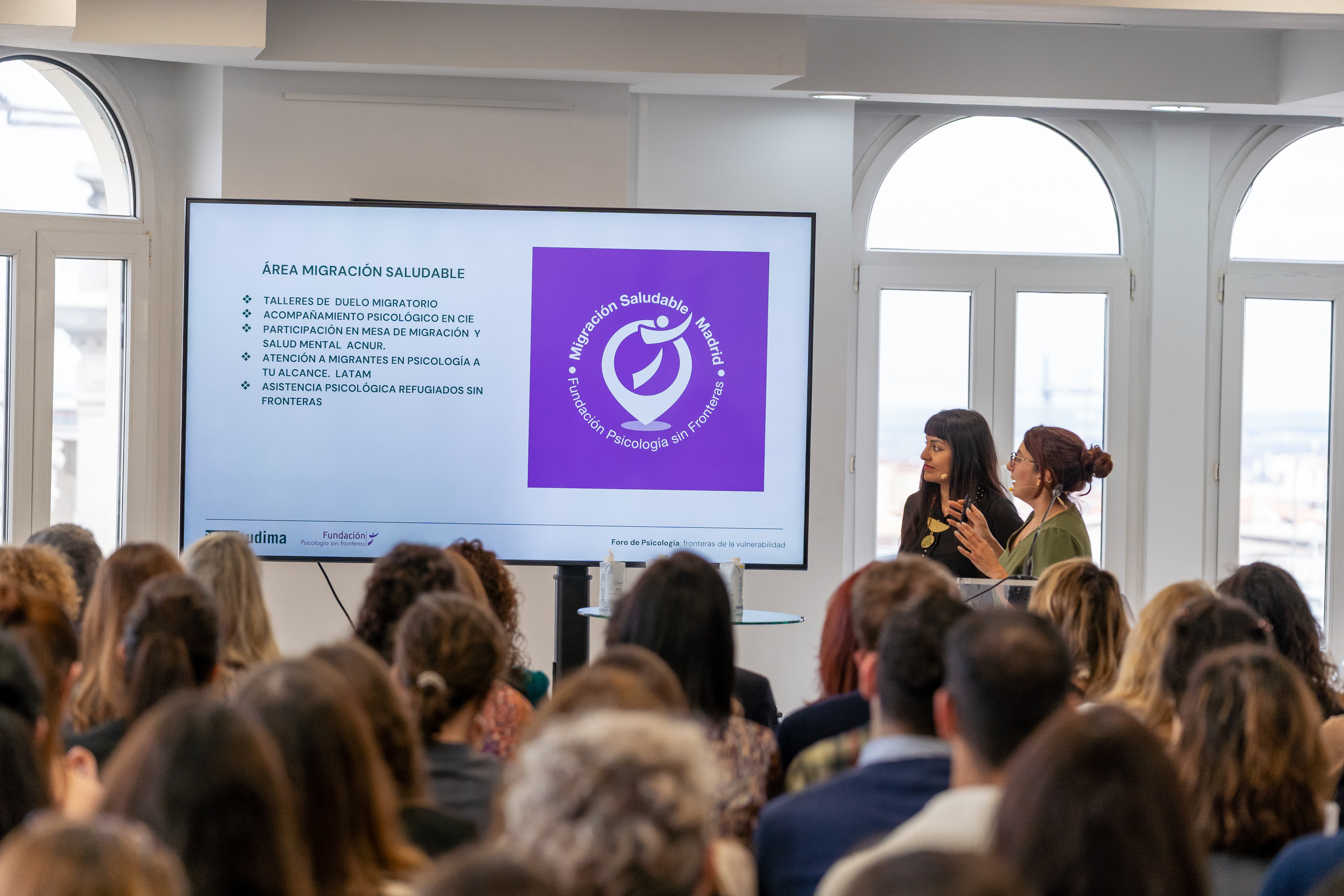 La universidad del Grupo CEF.- UDIMA reunió a diversos expertos en psicología y migración en el Foro de Psicología Fronteras de la Vulnerabilidad, celebrado en el Espacio Loop21 del centro de Madrid. Organizado en colaboración con la Fundación Psicólogos Sin Fronteras, la cita brindó un espacio para psicólogos colegiados y especialistas donde analizar cómo la migración y el trauma psicológico configuran experiencias de vulnerabilidad en las personas. Una realidad que se ha incrementado en los últimos años y "que va a llegar a consulta", aseguraban los expertos.