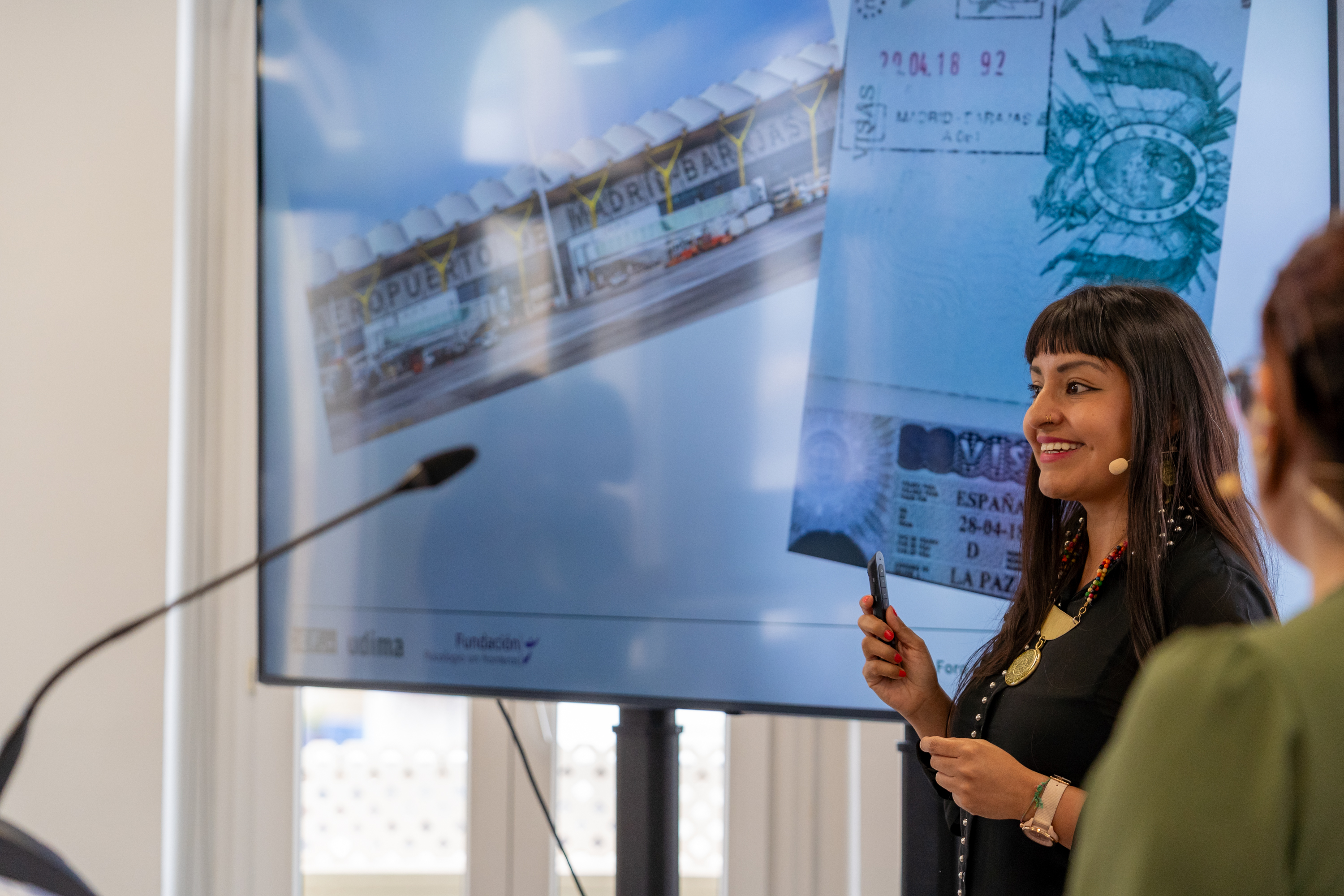 Tras un ejercicio con el público para detectar los estereotipos sobre el concepto migración, (que ella prefiere denominar movimiento migratorio), la psicóloga procedente de Bolivia aclaró por qué "no todos migramos en las mismas condiciones". Hay migraciones voluntarias, laborales, románticas o forzadas, pero incluso en estas últimas no todas pueden calificarse como "por refugio o persecución".