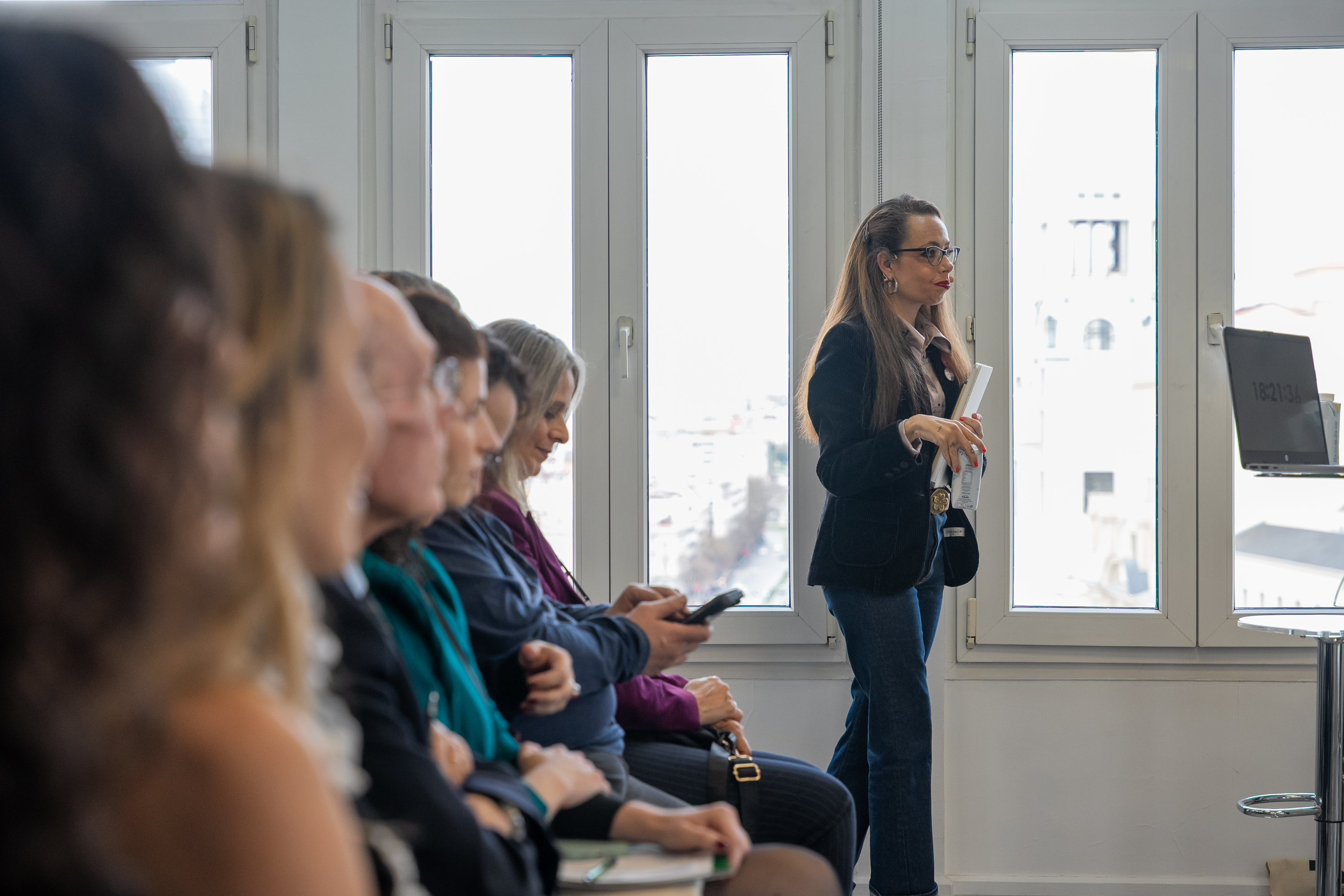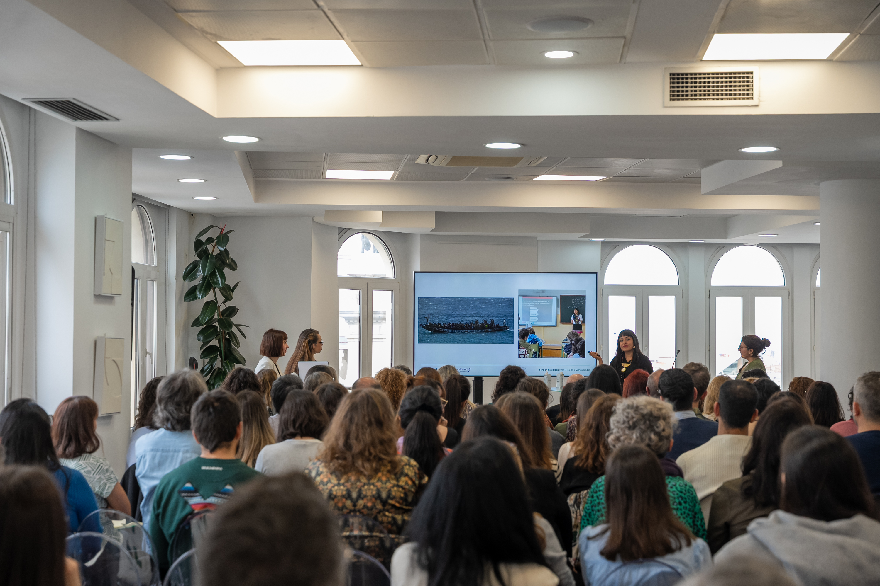 Gabriela L. Frías, psicóloga e integrante del Grupo de Trabajo sobre Migraciones, Asilo y Refugio del Colegio de Psicología de Cataluña, retomó la mesa de debate con su enfoque sobre uno de esos siete duelos: el duelo por la identidad profesional. Frías recordó que la migración siempre ha estado presente en la historia, y que "todos podemos ser un día migrantes".