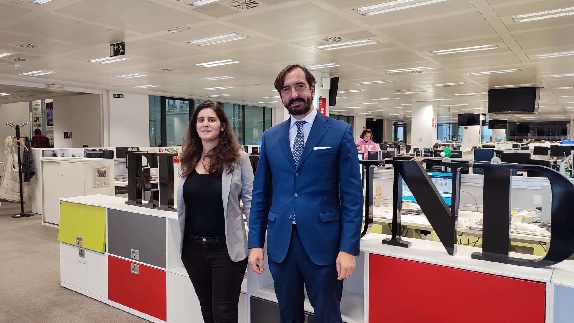 El presidente del Grupo Educativo CEF.- UDIMA, Arturo de las Heras, acompañado del director de Comunicación y profesor del Grado en Periodismo de la UDIMA, Luis Miguel Belda, visitó en su mesa de trabajo en el diario ‘El Mundo’ a la periodista Marta Corbal, antigua alumna que se formó en esta disciplina en la UDIMA.