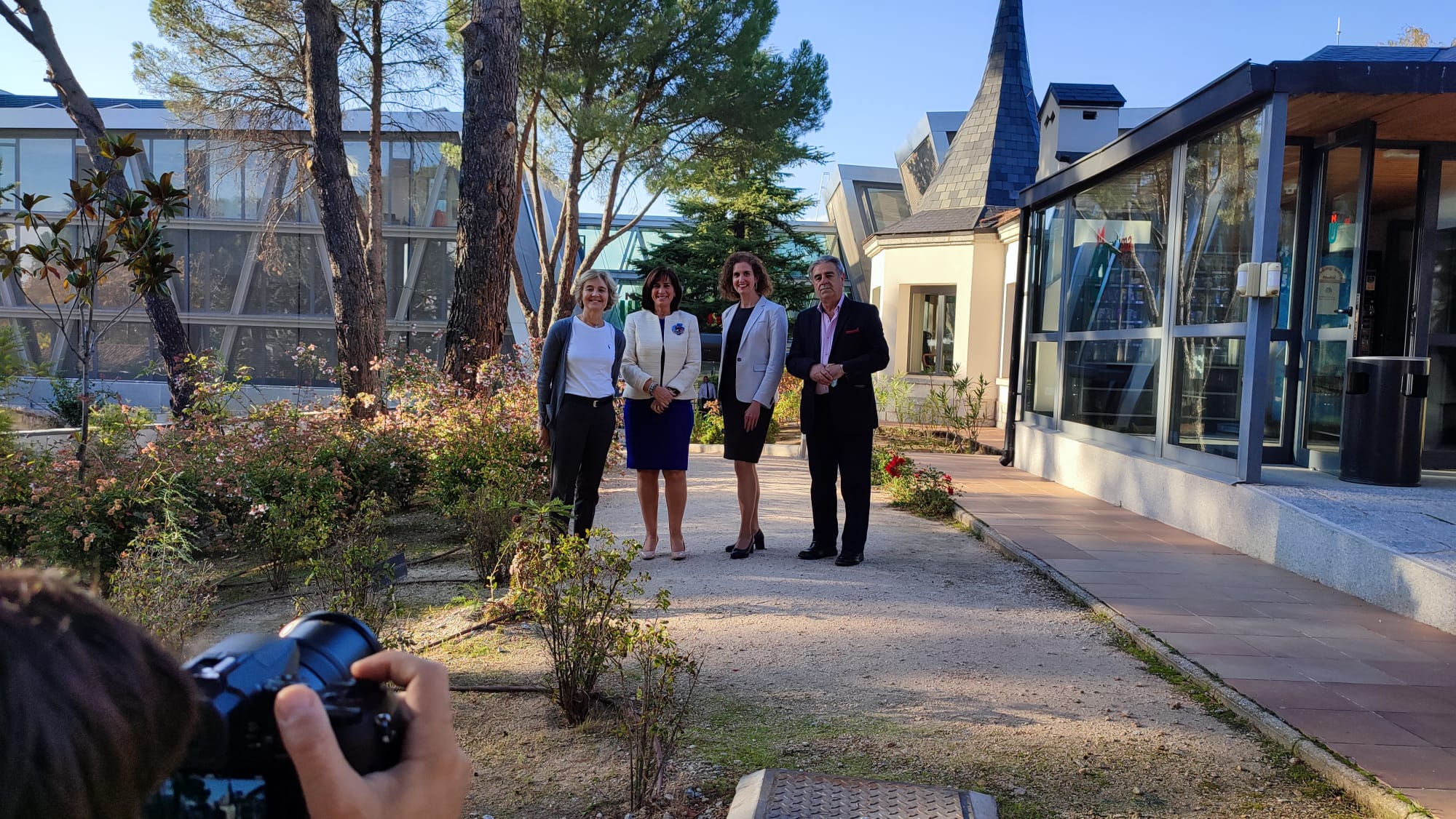 La exministra de Agricultura y Pesca, Alimentación y Medio Ambiente Isabel García Tejerina visitó el Campus de la Universidad a Distancia de Madrid, UDIMA, donde mantuvo un encuentro informal con la presidenta, Arancha de las Heras, y la rectora, Concha Burgos.