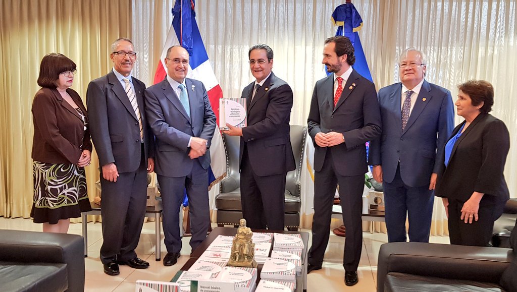 Una delegación de la Universidad a Distancia de Madrid (UDIMA), encabezada por el presidente de honor del grupo de empresas educativas CEF.- UDIMA, Roque de las Heras, y el presidente del CEF.-, Arturo de las Heras, a quienes acompañó el director de Relaciones Internacionales, Fredy Araujo, ha cursado una visita a la Universidad Autónoma de Santo Domingo, en la República Dominicana, a cuya Biblioteca Pedro Mir donan una selección de títulos publicados por Editorial CEF.-