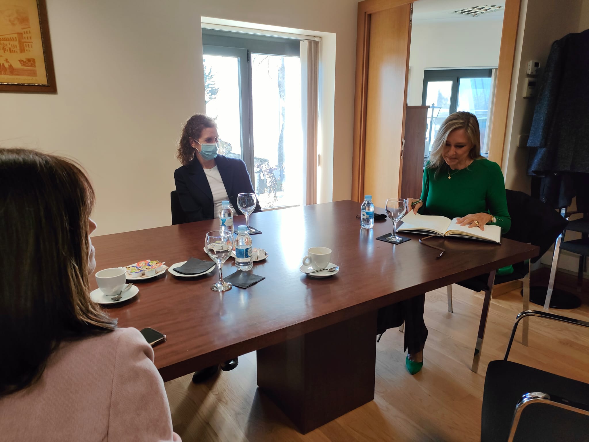 La escritora y periodista Marta Robles visitó el Campus de la Universidad a Distancia de Madrid, UDIMA, en Collado Villalba, donde mantuvo un encuentro informal con su presidenta, Arancha de las Heras, además de con la rectora de la institución académica, Concha Burgos.