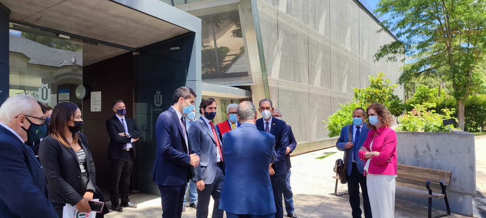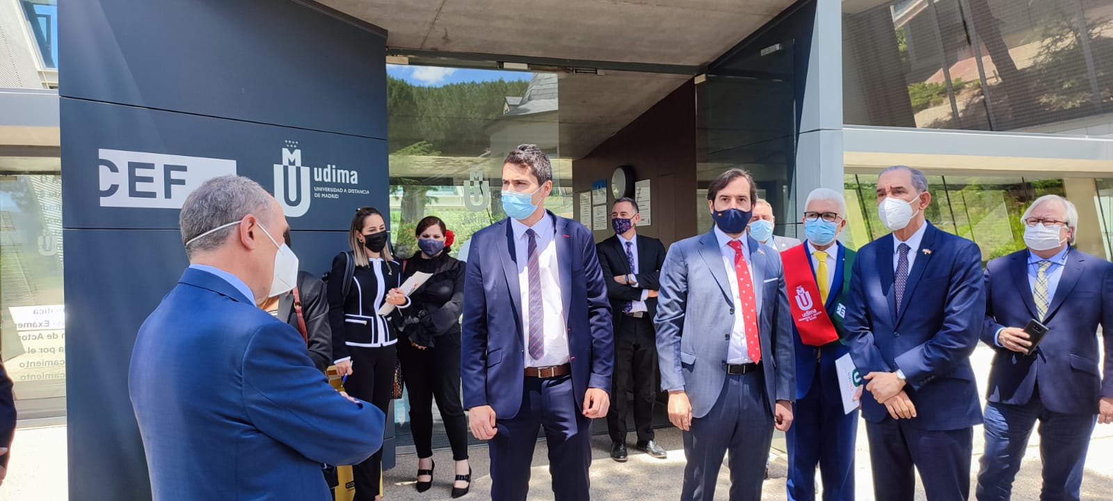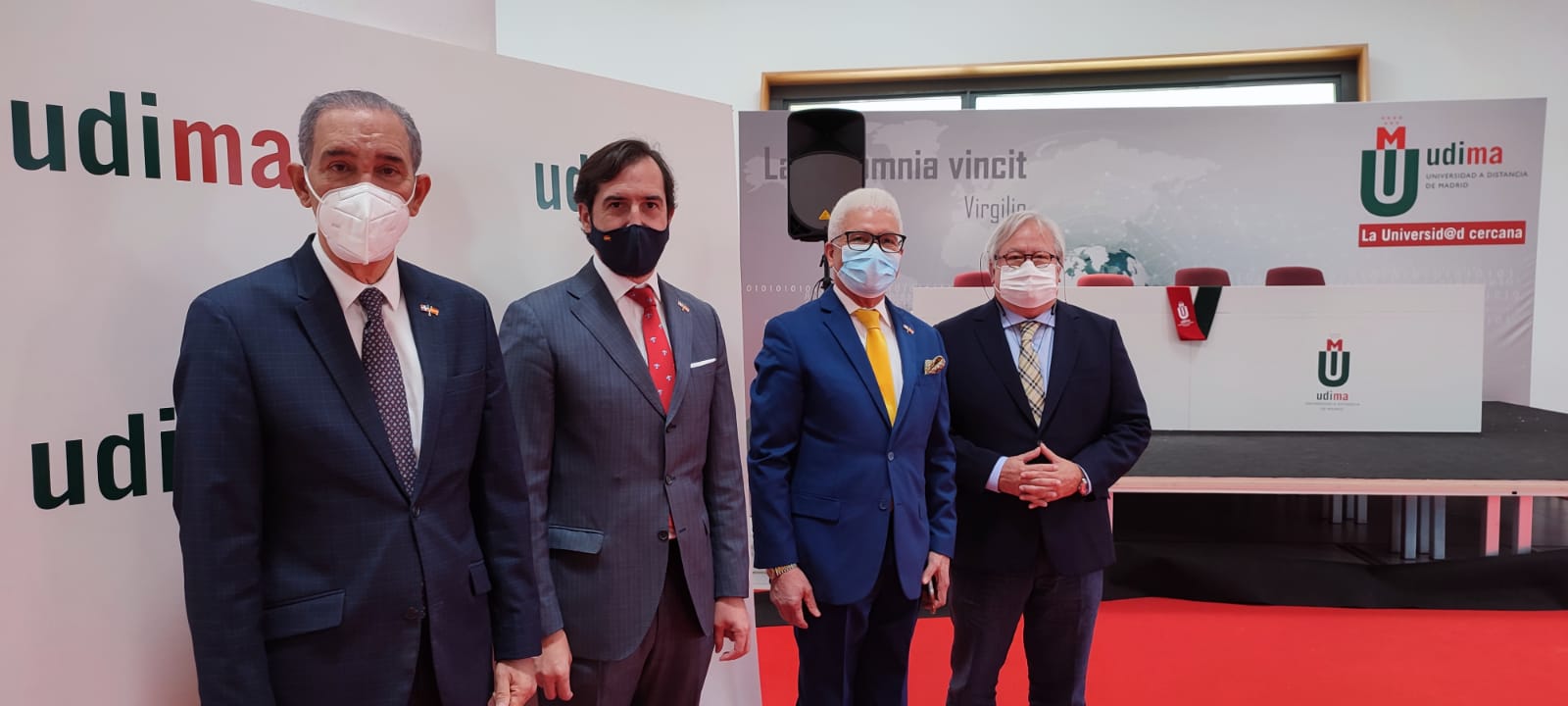 En el Campus Universitario de Collado Villaba, la delegación dominicana fue recibida por la presidenta de la UDIMA, Arancha de las Heras; la rectora, Concha Burgos; el presidente del Grupo Educativo, Arturo de las Heras; el presidente fundador, Roque de las Heras; el director de Relaciones Internacionales, Fredy Araujo; y el secretario general de la universidad, Eugenio Lanzadera.