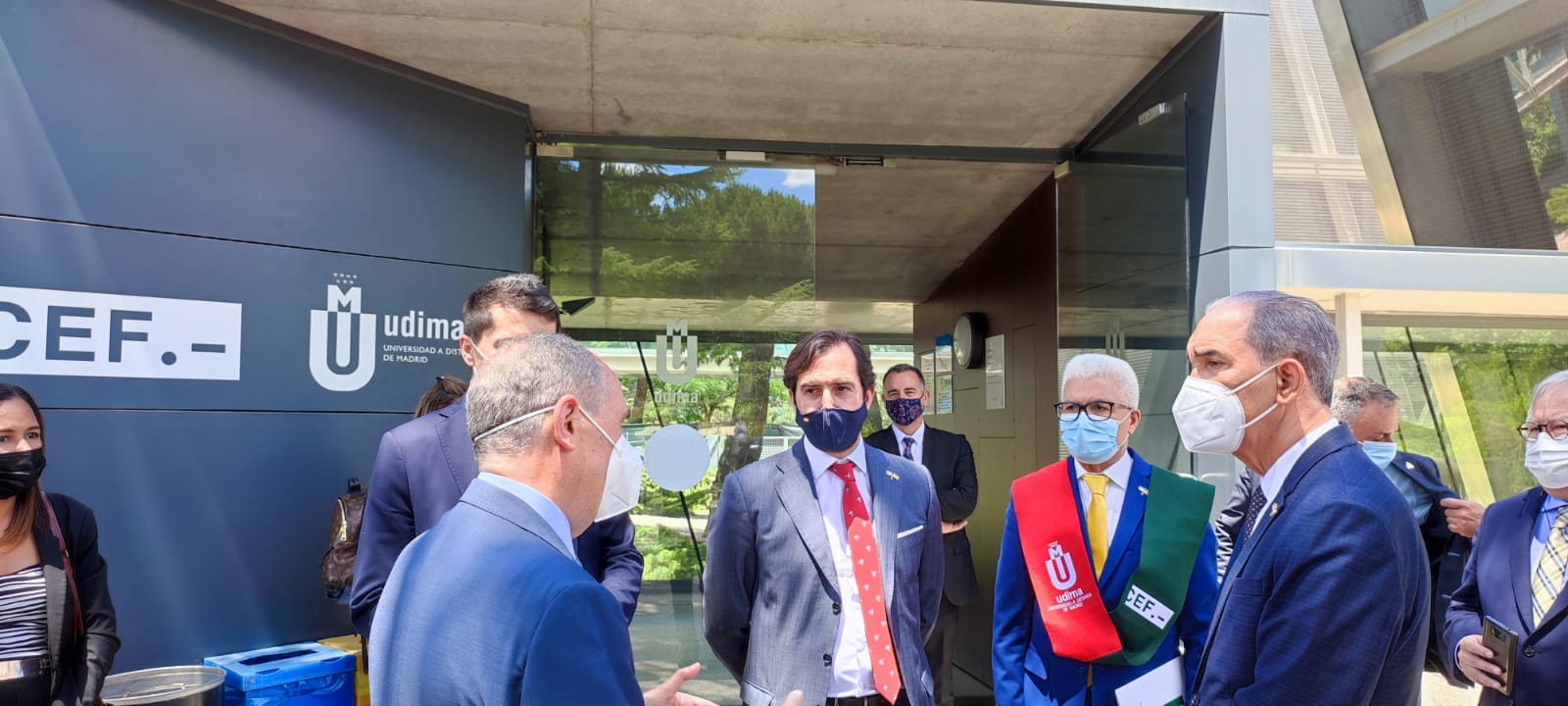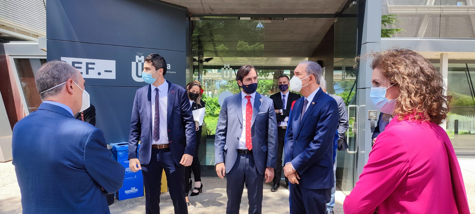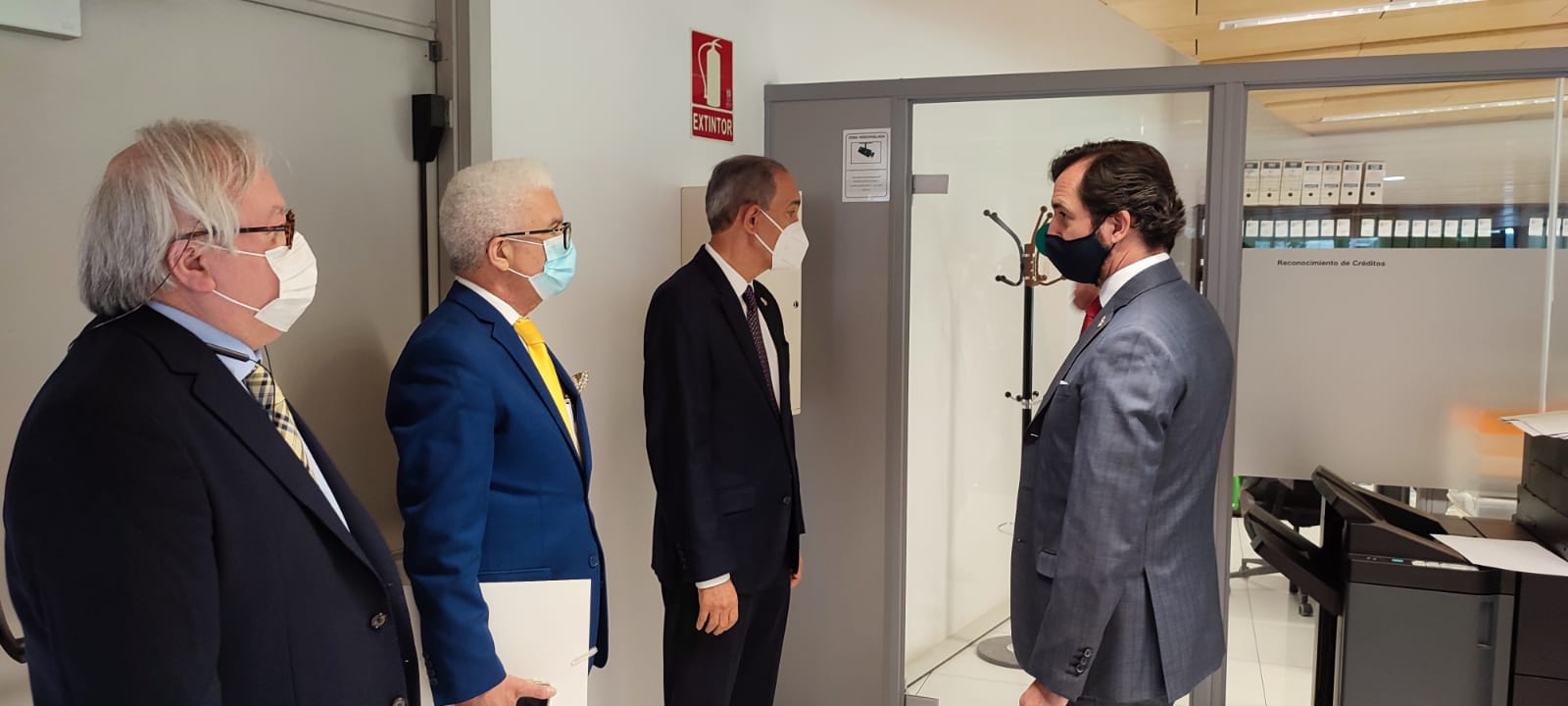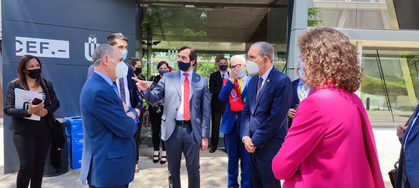 En el Campus Universitario de Collado Villaba, la delegación dominicana fue recibida por la presidenta de la UDIMA, Arancha de las Heras; la rectora, Concha Burgos; el presidente del Grupo Educativo, Arturo de las Heras; el presidente fundador, Roque de las Heras; el director de Relaciones Internacionales, Fredy Araujo; y el secretario general de la universidad, Eugenio Lanzadera.