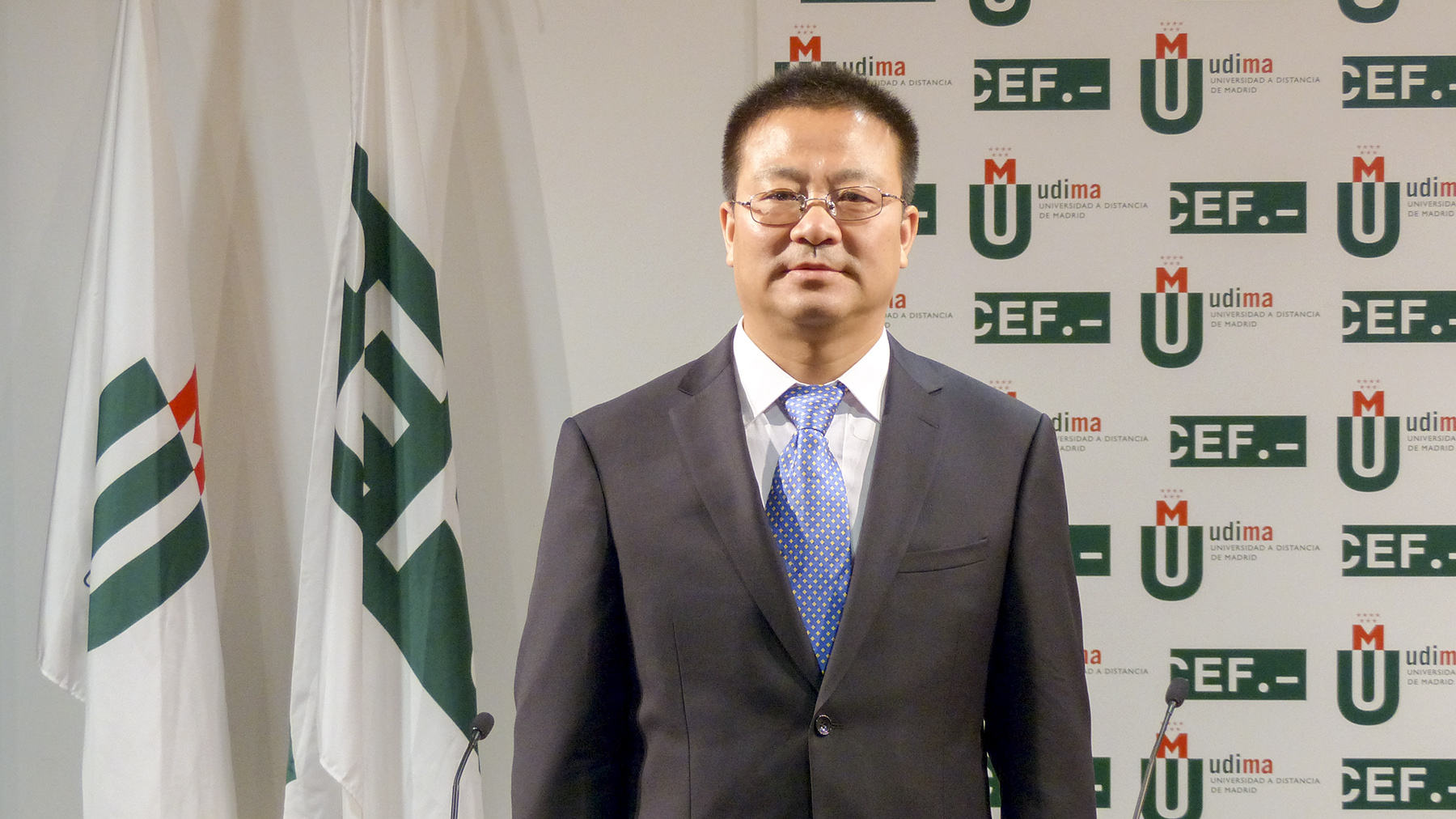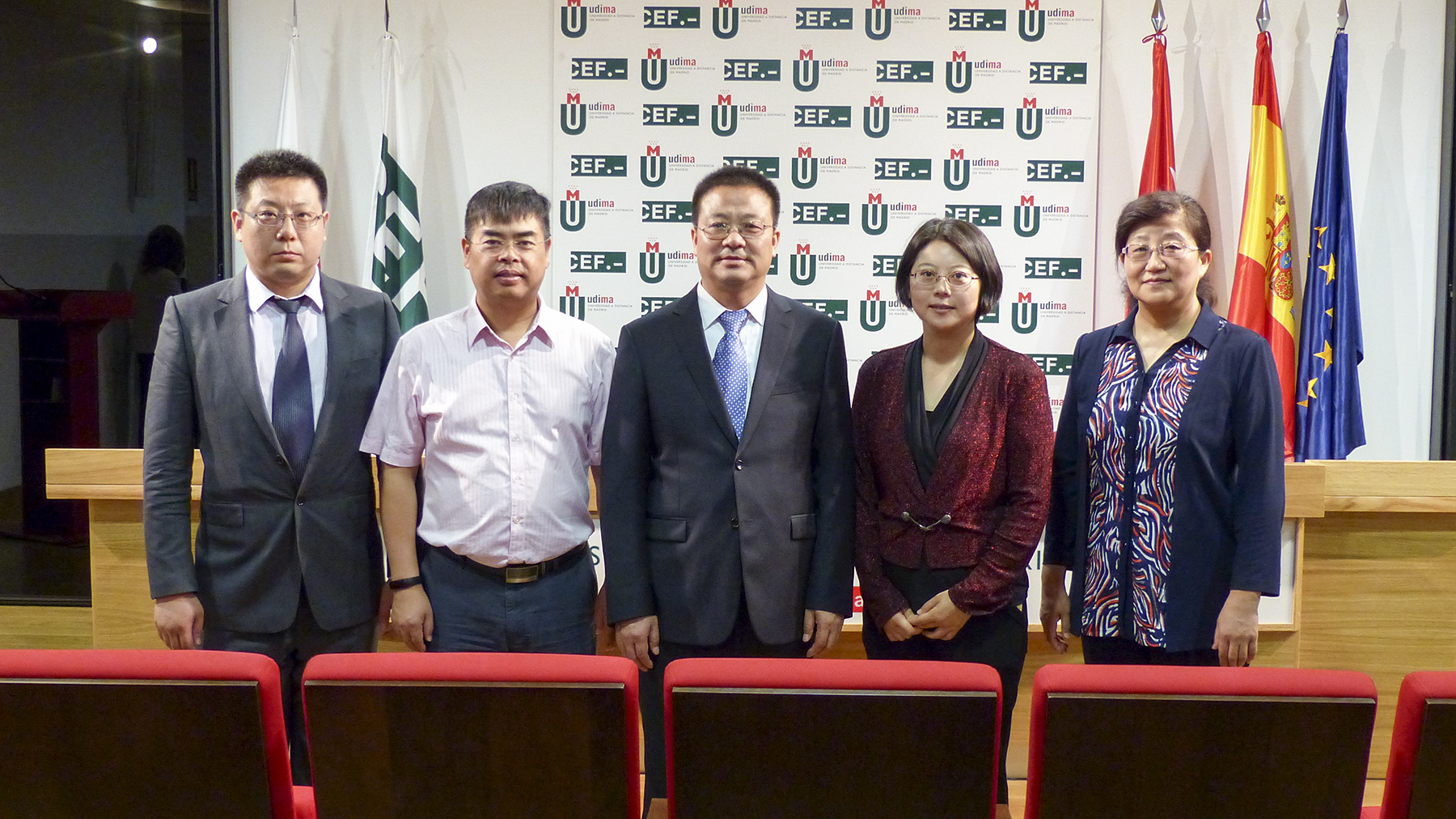 Acudieron al Campus de la UDIMA en Collado Villalba por la Open University China Yang Xiaotang, vicepresident; Wang Qifu, dean School of Vocational Education and Training; Zhang Xuhong, director Finance Dept.; Li Yanzhong, director Development and Planning Department, y Hou Songyan, program coordinator International Office.