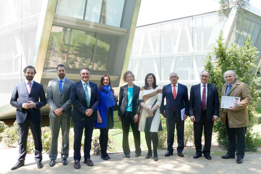 Acompañaron a Sánchez Martos en su visita a la UDIMA el presidente del Grupo CEF.- UDIMA, Roque de las Heras; la rectora de la institución, Concha Burgos; la vicerrectora de Relaciones Institucionales, Arancha de las Heras; el director general del Grupo académico, Arturo de las Heras, y el secretario general de la universidad, Eugenio Lanzadera, entre otras autoridades.