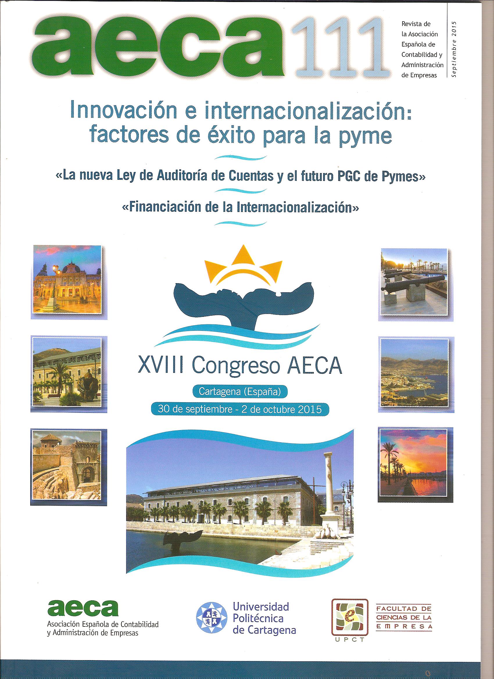 El XVIII Congreso AECA "Innovación e Internacionalización: factores de éxito para la Pyme", tuvo lugar en Cartagena del 30 de septiembre al 2 de octubre de 2015. El mismo fue organizado conjuntamente por la Asociación Española de Contabilidad y Administración de Empresas (AECA), y la Facultad de Ciencias de la Empresa de la Universidad Politécnica de Cartagena.